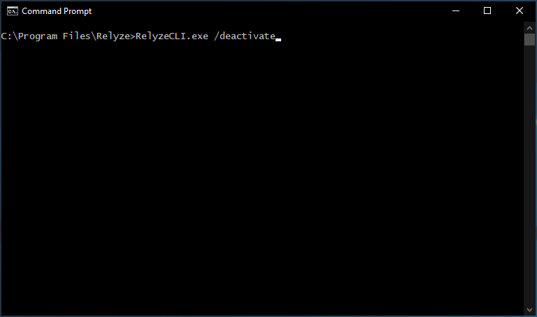 To deactivate a license you must use the Command Prompt and run the command “RelyzeCLI.exe /deactivate” as shown below.