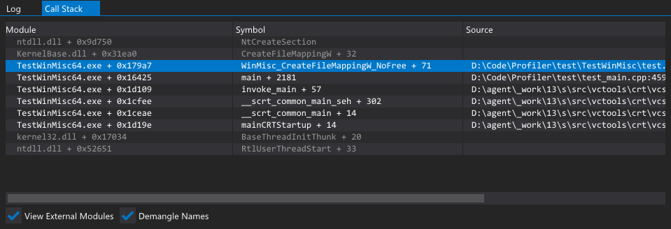 - COFF Symbols - This call stack entry ware resolved with COFF symbol information.