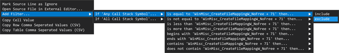 - Copy Table comma Separated Values (CVS) - Copies the entire call stack table in a comma separated value (CSV) format to the system clipboard.