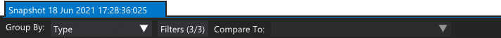 - Compare To - If two or more snapshots have been taken, you can compare one snapshot against another snapshot. This lets you view what allocations are present in both snapshots and which allocations are present in one snapshot but not the other. An example of Comparing Snapshots is available.